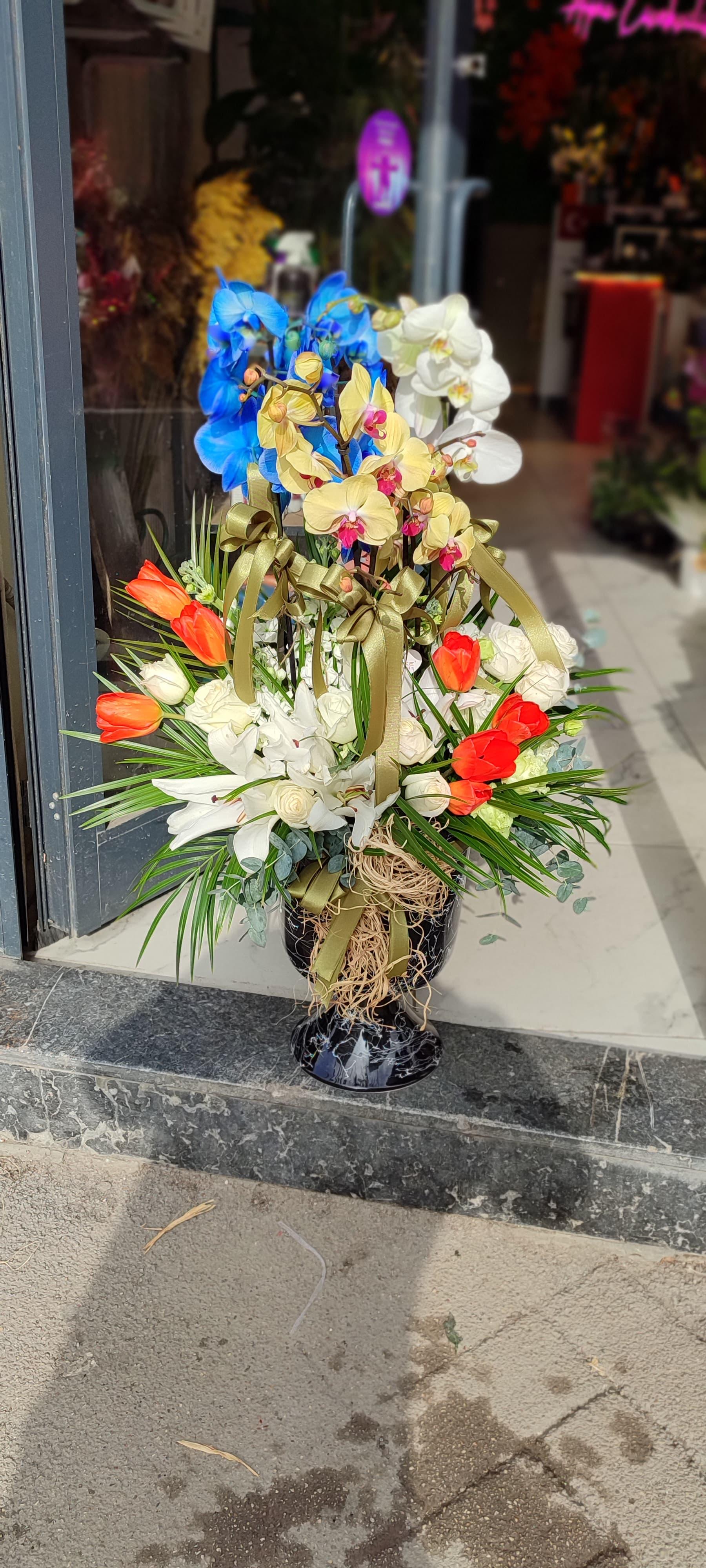 Özel Tasarım Seramikte Mavi Orkide Arajmanı