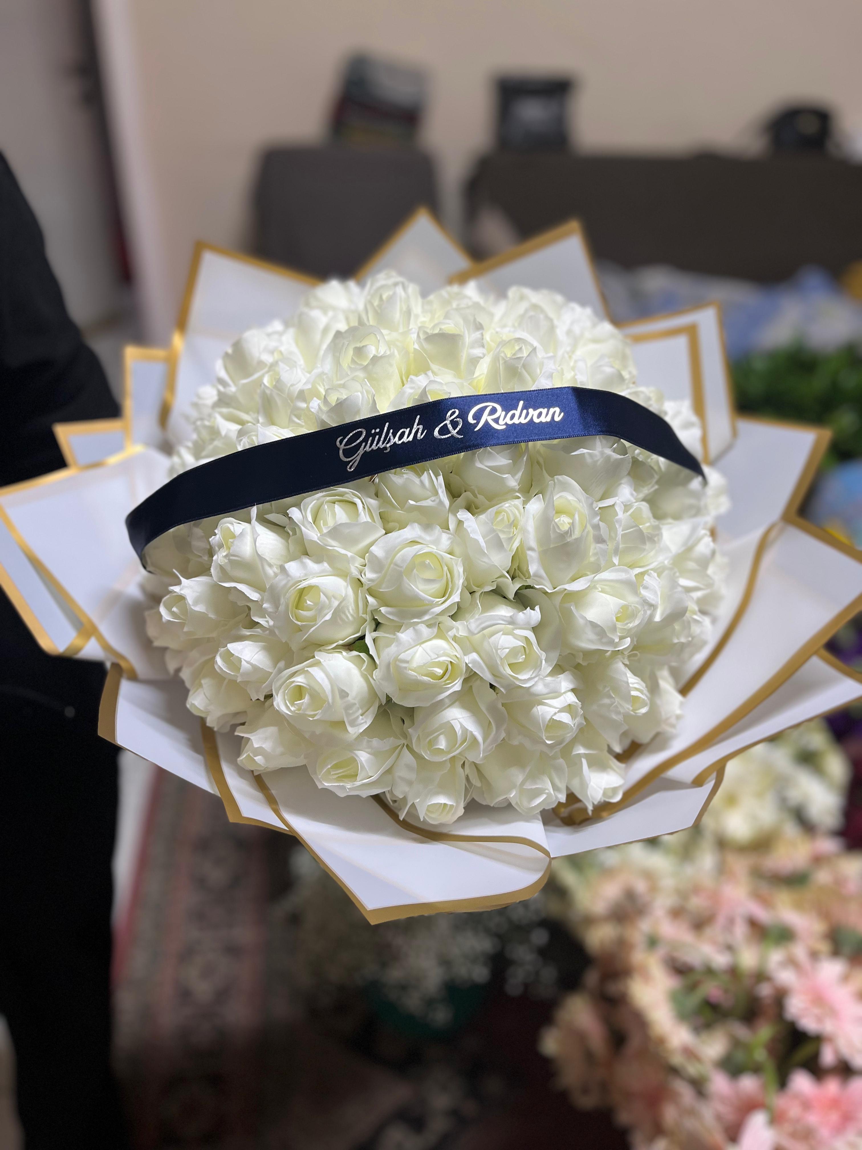 51 Adet Yapay Beyaz Gül Buketi